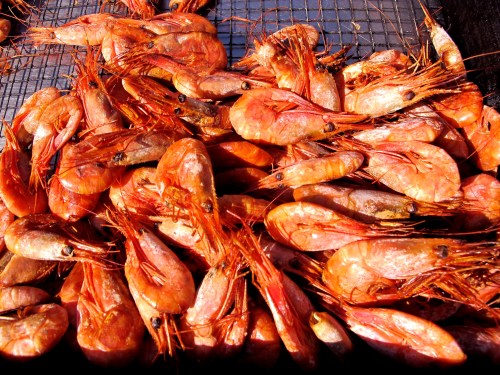 Another treat they were busy smoking is whole shrimp. Of course the shrimp smoke much more quickly, in about 45 minutes, but they are done in the same smokehouse along with the salmon. Talk about little bites of smoked heaven. These are a dream simply served on a triangle of bread fried in butter to a golden brown in a stovetop skillet.