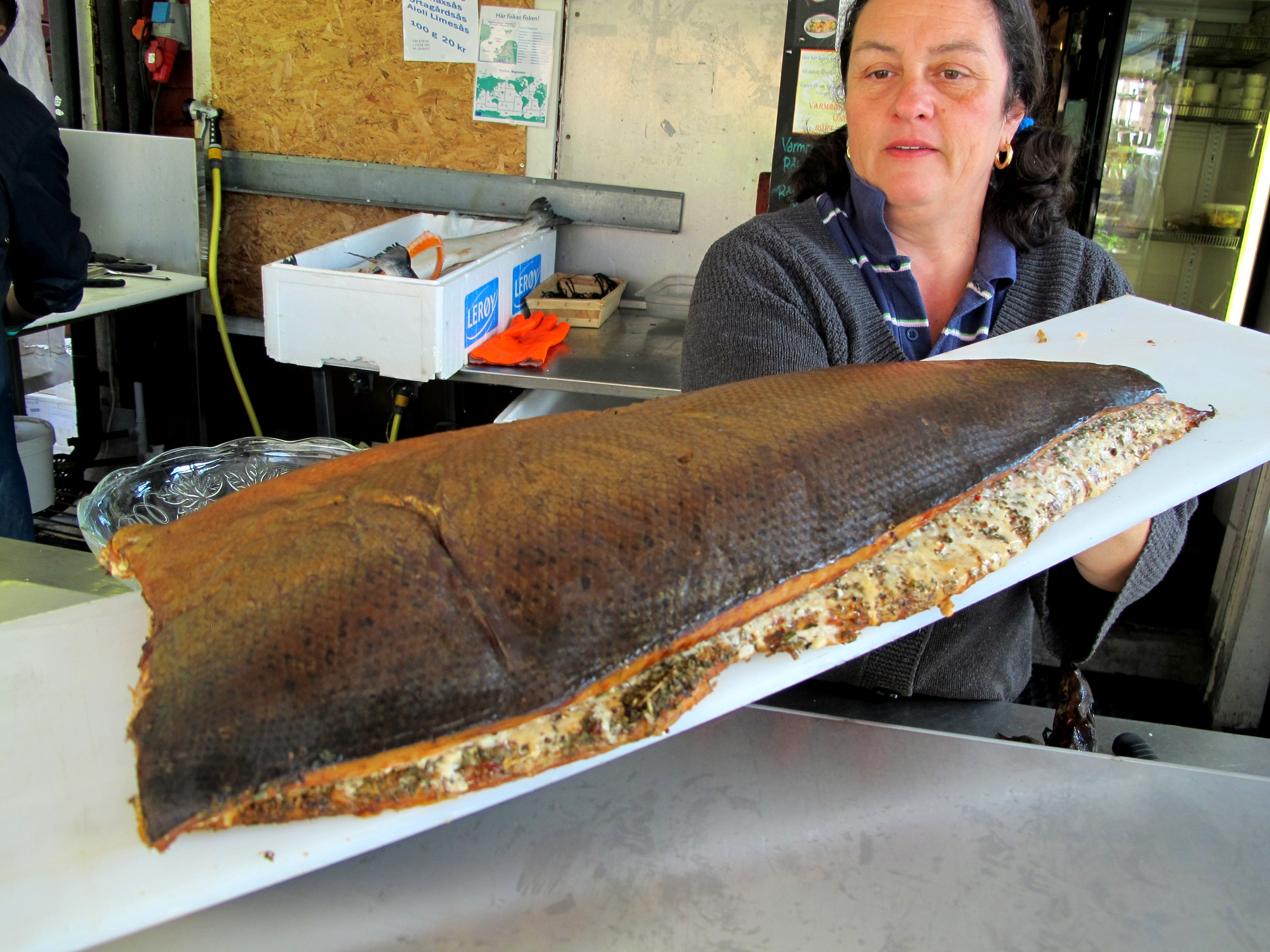 At Löjromet they have been smoking their own salmon on-site since 2004 and the owners Linda, Lars, and Lars are some of the nicest people you could meet. I have been a customer here for over three years and each time I come to their stand it’s a pleasure. I popped in on a day when they were doing their smoking, mentioned I was starting a blog, and asked for a bit of information about the process. They readily led me back to the smokehouse, happily answered my questions, and even invited me for a cup of coffee.