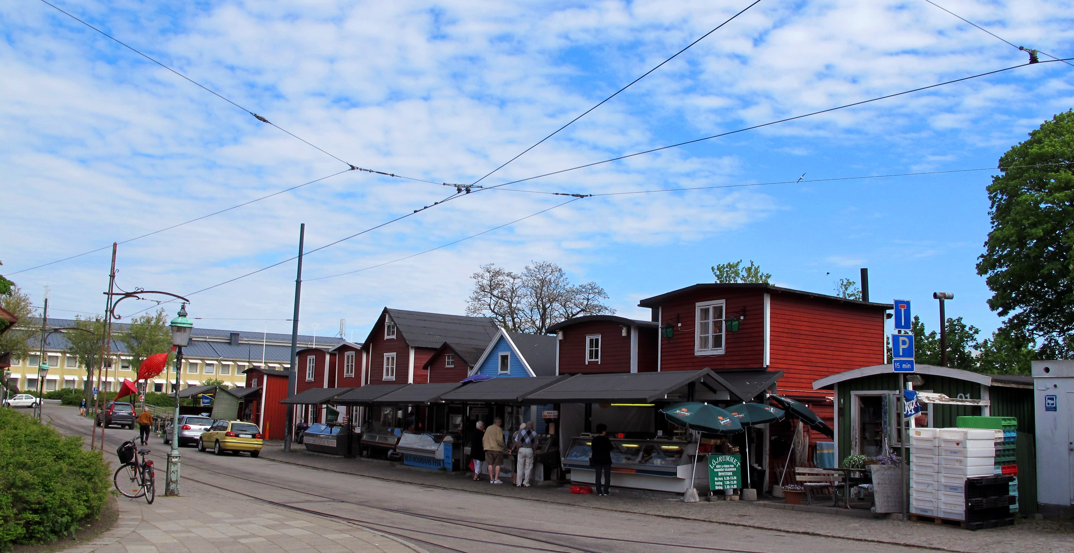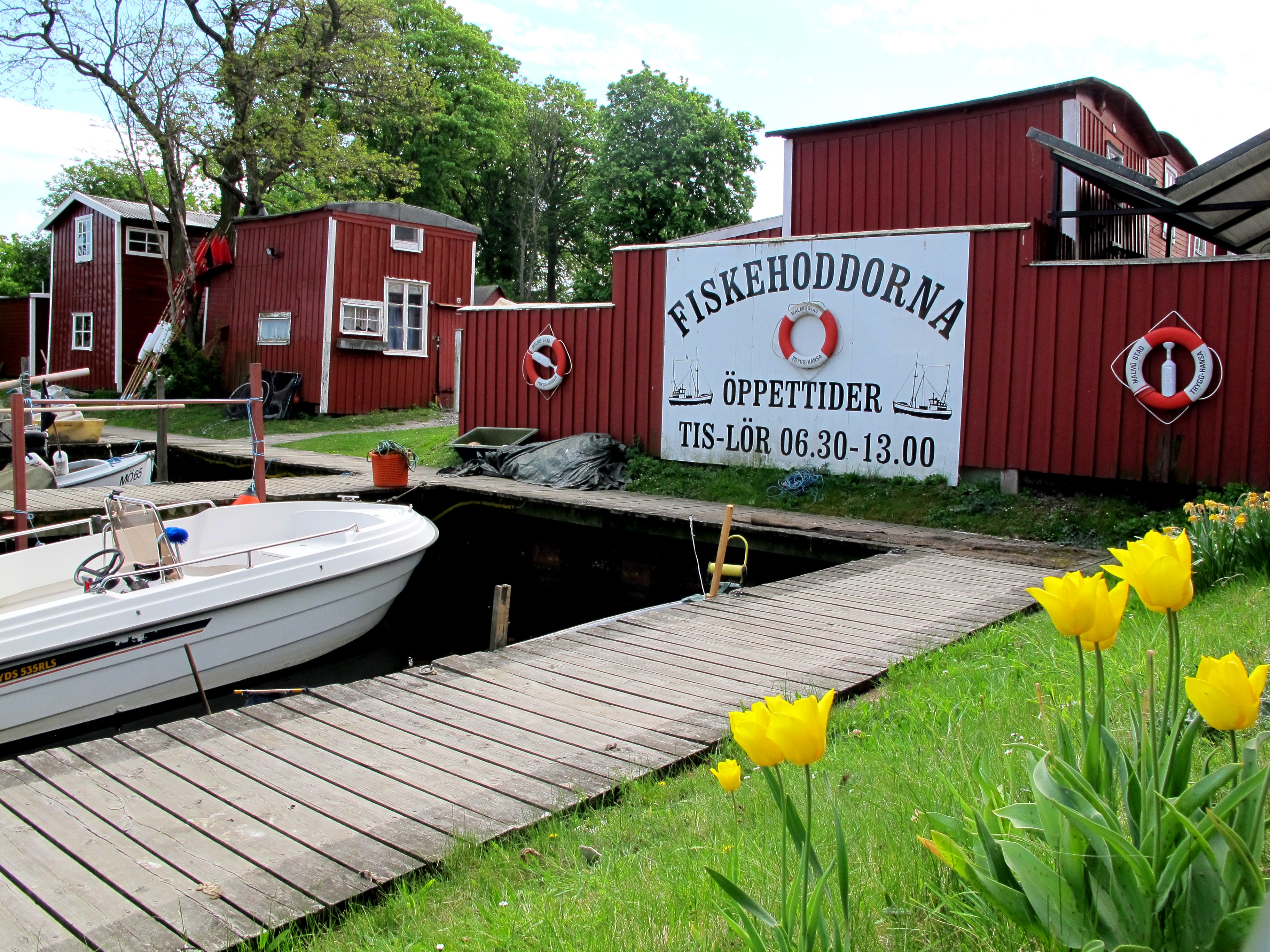 One of the first places I visited after moving to Malmö was the fiskehoddarna (fish huts) next to the Tekniska Museet and Sjöfartsmuseet (Technical Museum and Seafaring Museum). They are a charming row of historic fishing huts that were moved to this location in 1956 when the once flourishing Malmö fishing industry was sinking and a group of remaining fisherman donated their huts to the Sjöfartsmuseet. Today you can find a variety of fresh fish and shellfish here as well as pickled herring and smoked specialties like eel and mackerel. Some of the huts clearly offer their own recent catch of slippery, thrashing eels, and gasping rödspätta (European plaice) while others have a  local mix as well as selections like sea bream and langoustine that are not from this region.