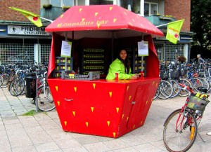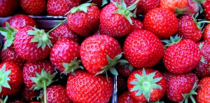 Swedes take their jordgubbar (YOHRD-goo-burr) very seriously despite the fact that jordgubbar literally means “earth men” (gubbar is an endearing term for an old man). Swedish strawberries are a big part of the summer culture with an annual harvest of around 15 000 000 kg (16, 524 tons). That accounts for 3-4 liters per person in Sweden (this semiswede has certainly already eaten her fair share and has no plans to slow down). Imports are not looked upon favorably although Belgian strawberries seem to be an acceptable distant second in a pinch. If you serve strawberries or bring them to someone as a gift, you should not be surprised if you are asked, “Are they Swedish?”  Swedish strawberries start out pretty spendy with their first appearance being around  $7 (45 sek) a pint and then they drop down to around $4.75 (30 sek). They play a significant role at Midsummer celebrations where they are typically served whole for dessert with milk and sugar. Picking your own berries used to be a summer tradition for many families and accounted for 50% of sales 15 years ago but today are only 20% of sales. My kids love to visit the strawberry fields and seek out the ripe berries hiding under the leaves. Perhaps they have inherited my berry picking addiction. We do our part to keep those “you-pick” numbers up.
