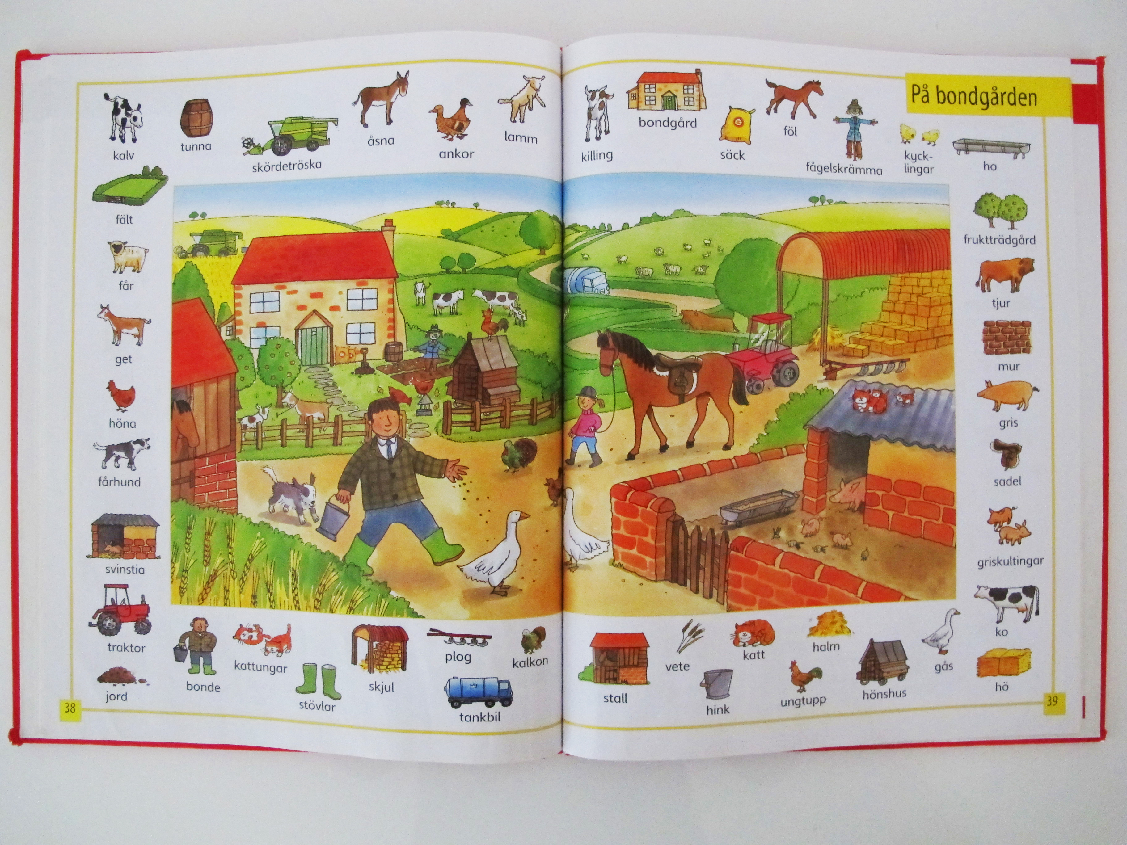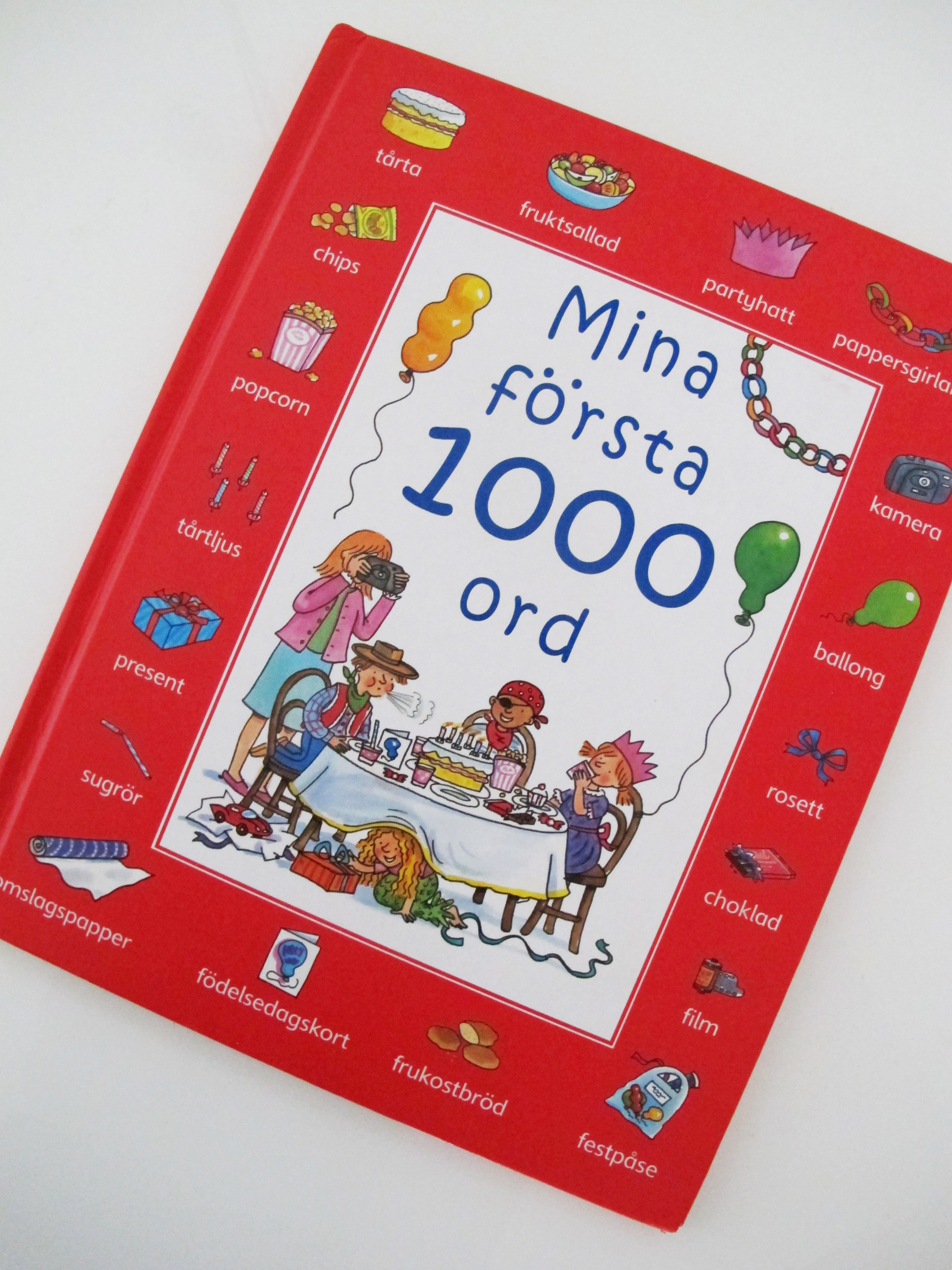We had only lived in Malmö a few days when my sister-in-law Margareta stopped by for a visit and brought Mina Första 1000 Ord by Jan Lewis. It was a gift to my then one year old daughter, Elsa, and was also intended to help me with my Swedish. The book was an instant hit with us both. Elsa loved looking at the pictures and it was helpful for me to put an image with Swedish words.