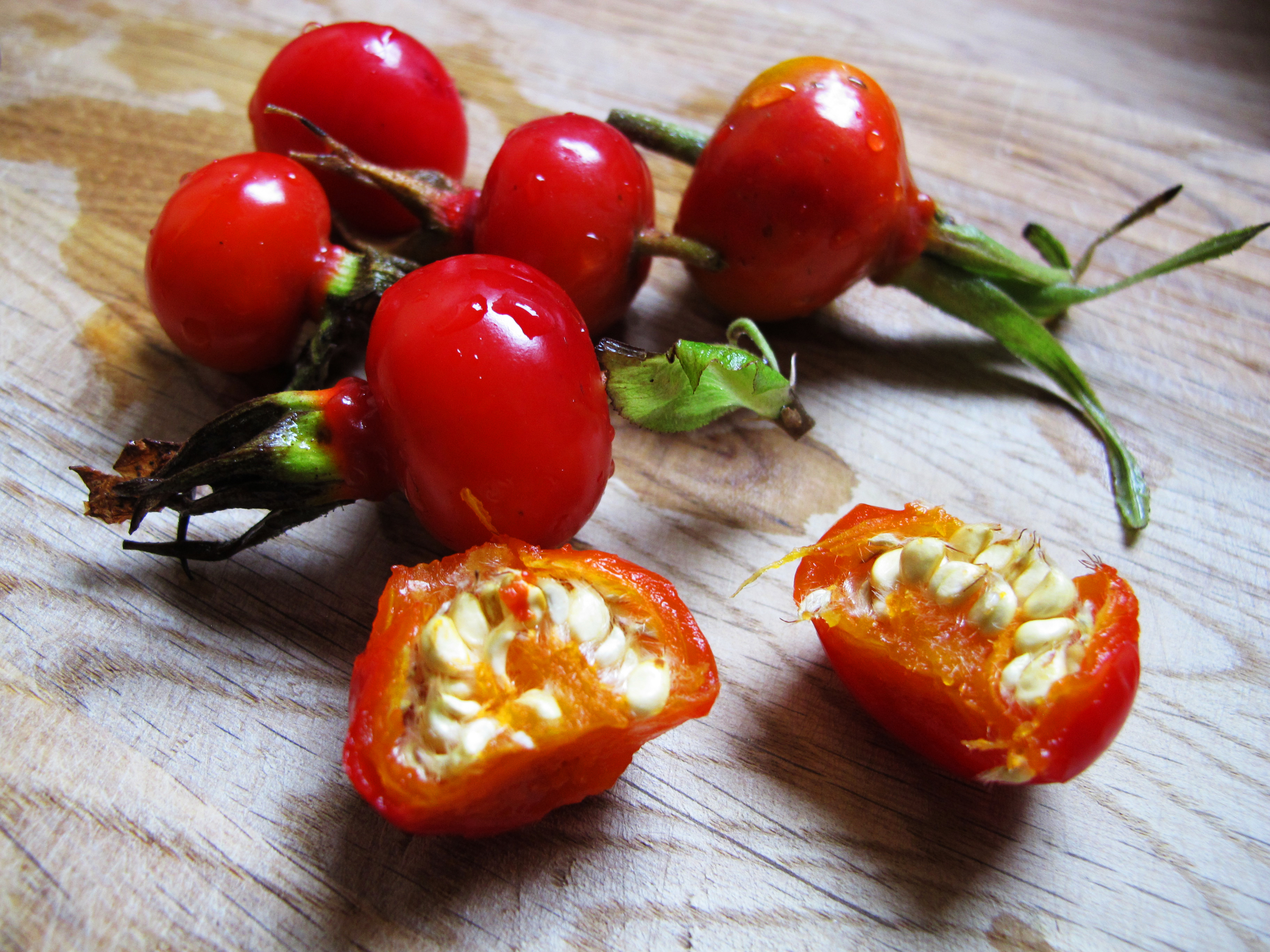 One of the easiest, and most gratifying foraging finds in Sweden are wild rose hips, particularly the large rosa rugosa. From beaches to front yards the bright vermillion-red hips are generally ripe from August to October. There are masses of them to be found at Lomma Beach on the southwestern Swedish coast. In just 20 minutes I easily picked four liters and to say there were still enough left for the birds is an understatment.