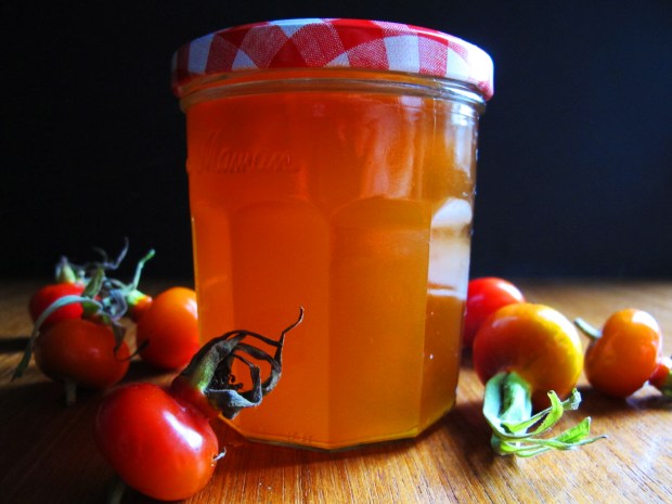 I was really pleased with the rose hip jelly result. It retained the gorgeous color of the rose hips and I’m having fun finding all sorts of different uses for it such as glazing roast chicken and cooked carrots (recipes to come) and I think it would be a lovely and unique addition to glazing fruit tarts. It doesn’t set up like a firm jelly, but is more substantial than a syrup. All in all it’s subtle and versatile. And I’m in love with that luminous, translucent, soft rosy color. Hip-hip-hurrah. Enjoy.