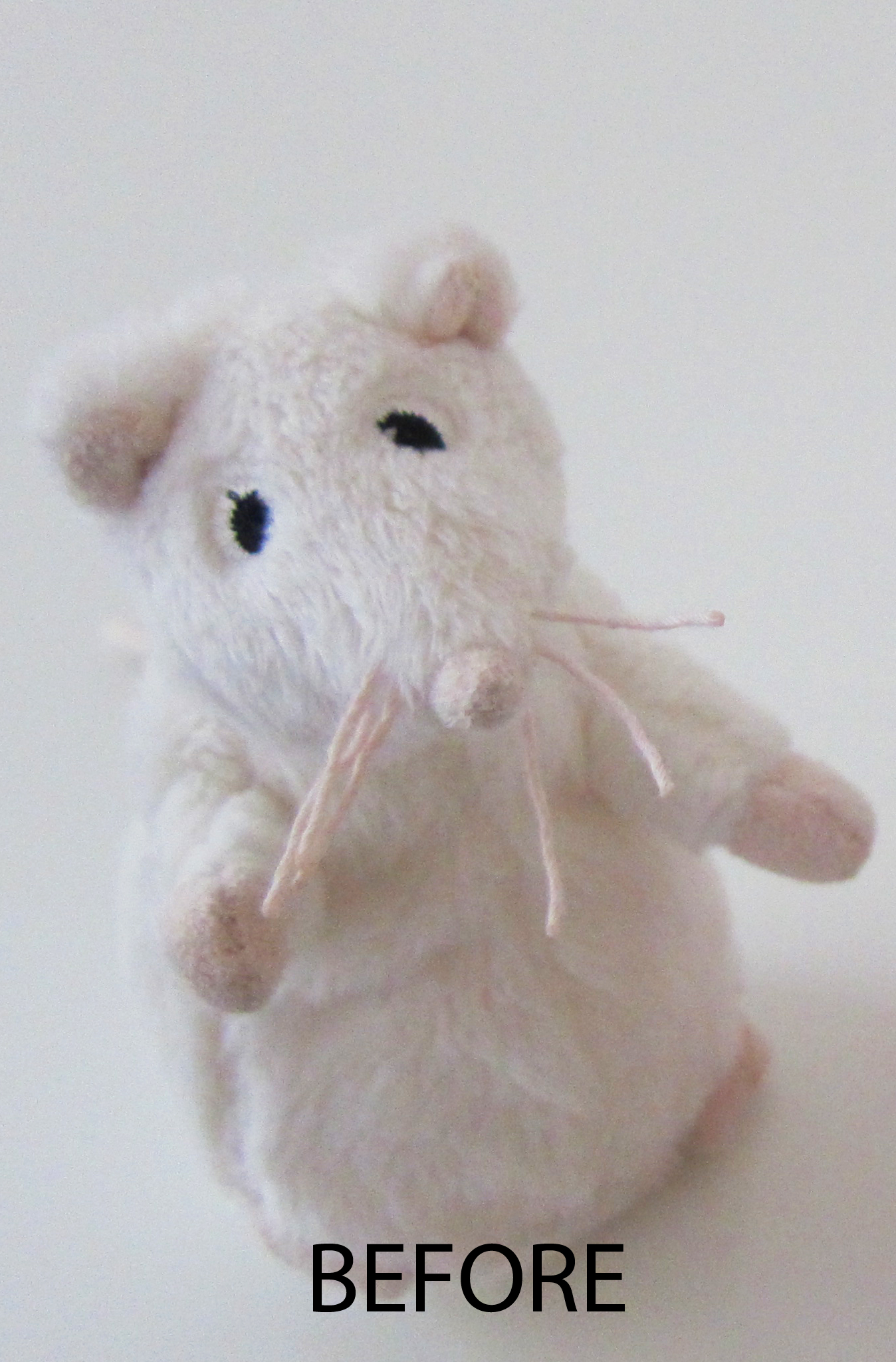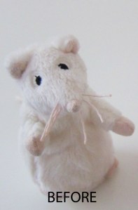 Admittedly the BEFORE and AFTER aren’t exactly fair because I did fix the latter’s whiskers and give her a charming pink pedestal. But aside from all that ‘fancy stuff’ it’s the bow that does the magic. So if you have an Angelina Ballerina lover in your life and an IKEA in your area, you too can help to remedy this rodent problem.