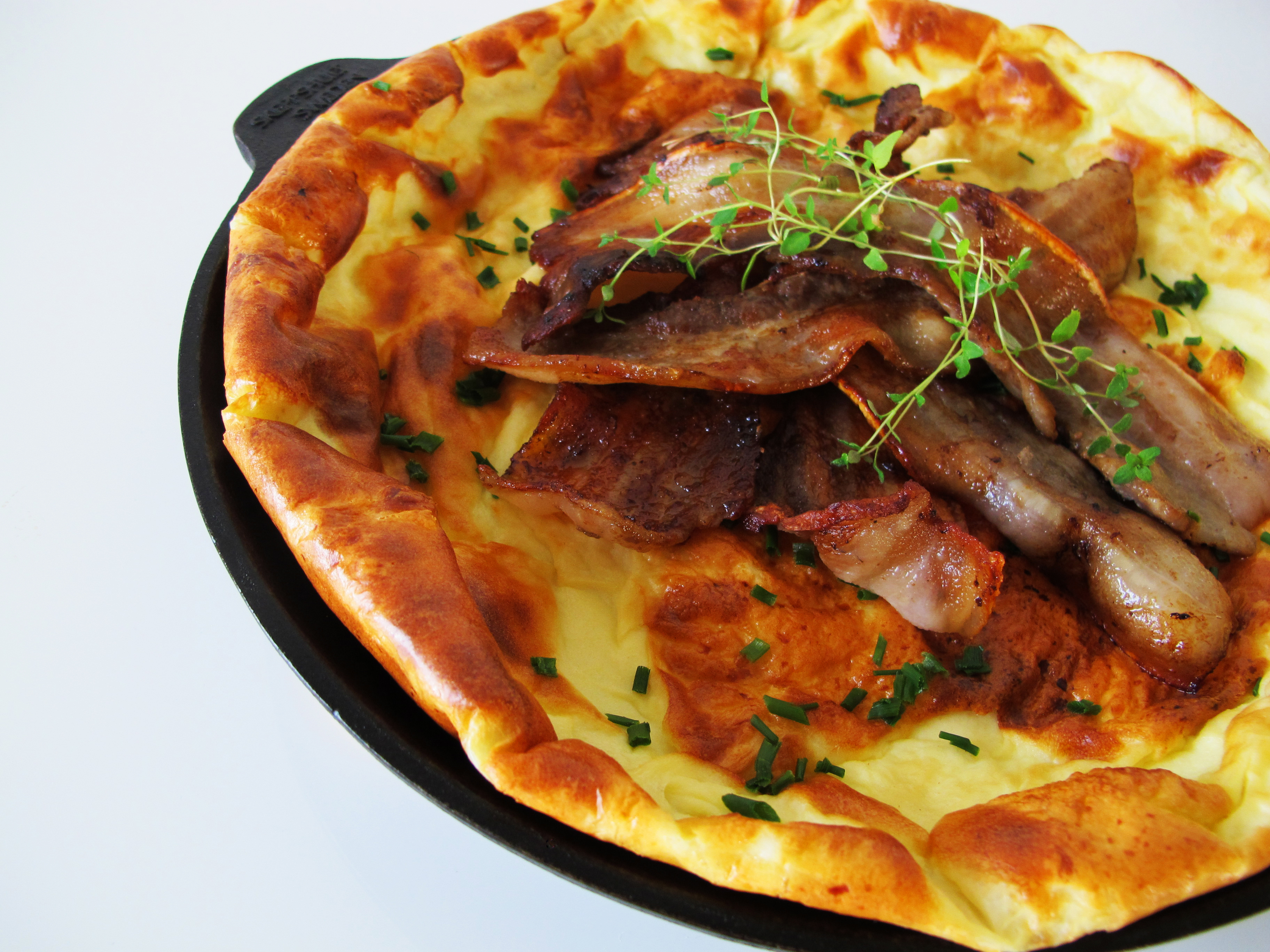 It almost looks like a popover or yorkshire pudding.Would you say this dish may have a similar taste? It look yummy and bacon oh boy. Your photos are fantastic great, job well done!