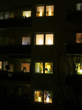 The matching lights is just about symmetry and light, nothing more complicated than that. It would look wonky if you put just one light in one of two windows. It was an interesting read though, I didn’t know the history of the Christmas decorations, although I can say this… Most swedes I know find colored Christmas lights tacky, not to mention flicking ones :O