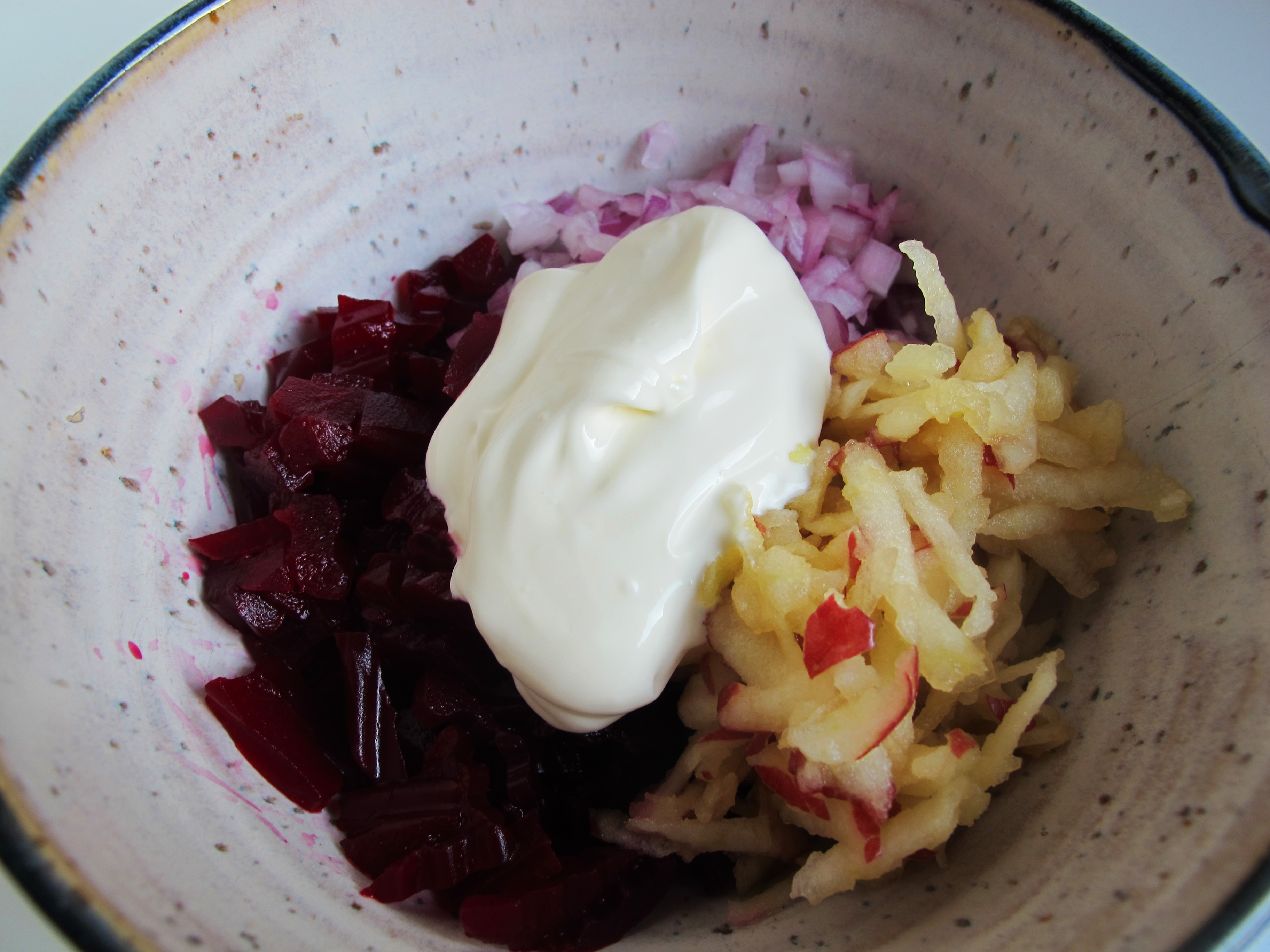 I made this for a picnic lunch and it was a hit with my pickled-beet loving relatives. I will definitely be making the pink salad again! Thanks for the recipe.