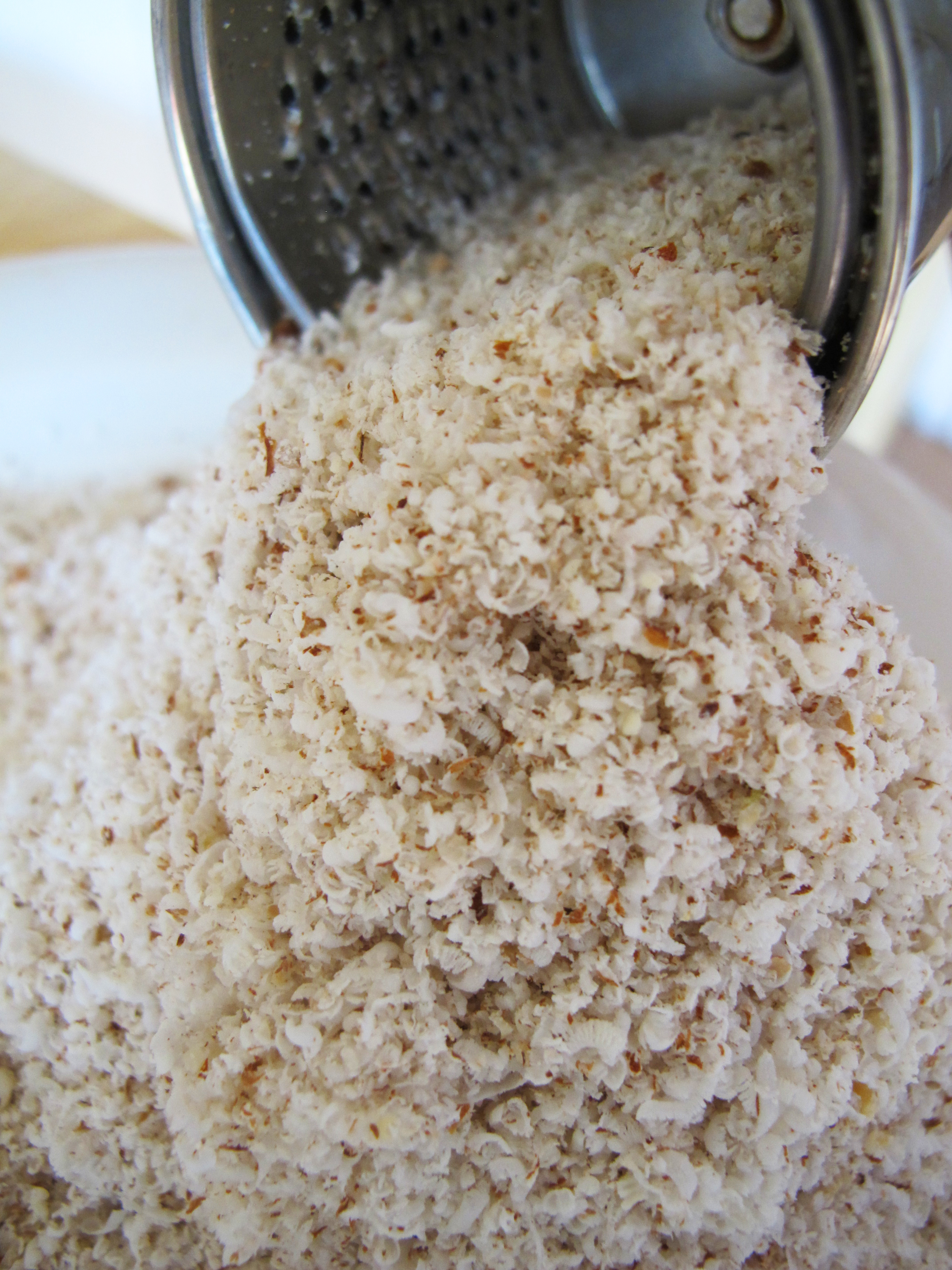 There are several recipes in Swedish baking that call for ground almonds and there is a special almond grinder, or mandelkvarn, that many Swedish cooks have at home. But it’s not a given that you need one. My zyliss parmesan grater produced the same fluffy consistency. Perhaps a food processor with the right grinder blade would work as well but since little bits of whatever I’m trying to slice or grate always get trapped between the lid and blade of my food processor I’m sticking with the official mandelkvarn.