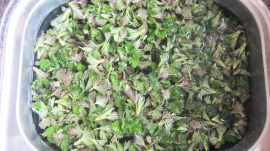 1. Rinse the nettles well by swishing them around in a sink of cold water and letting them float for a couple of minutes so any dirt will sink to the bottom. They will still sting at this stage so work carefully. Gently remove the nettles from the water trying not to disturb dirt in the bottom and keep an eye out for any unwanted bugs that need to be removed.