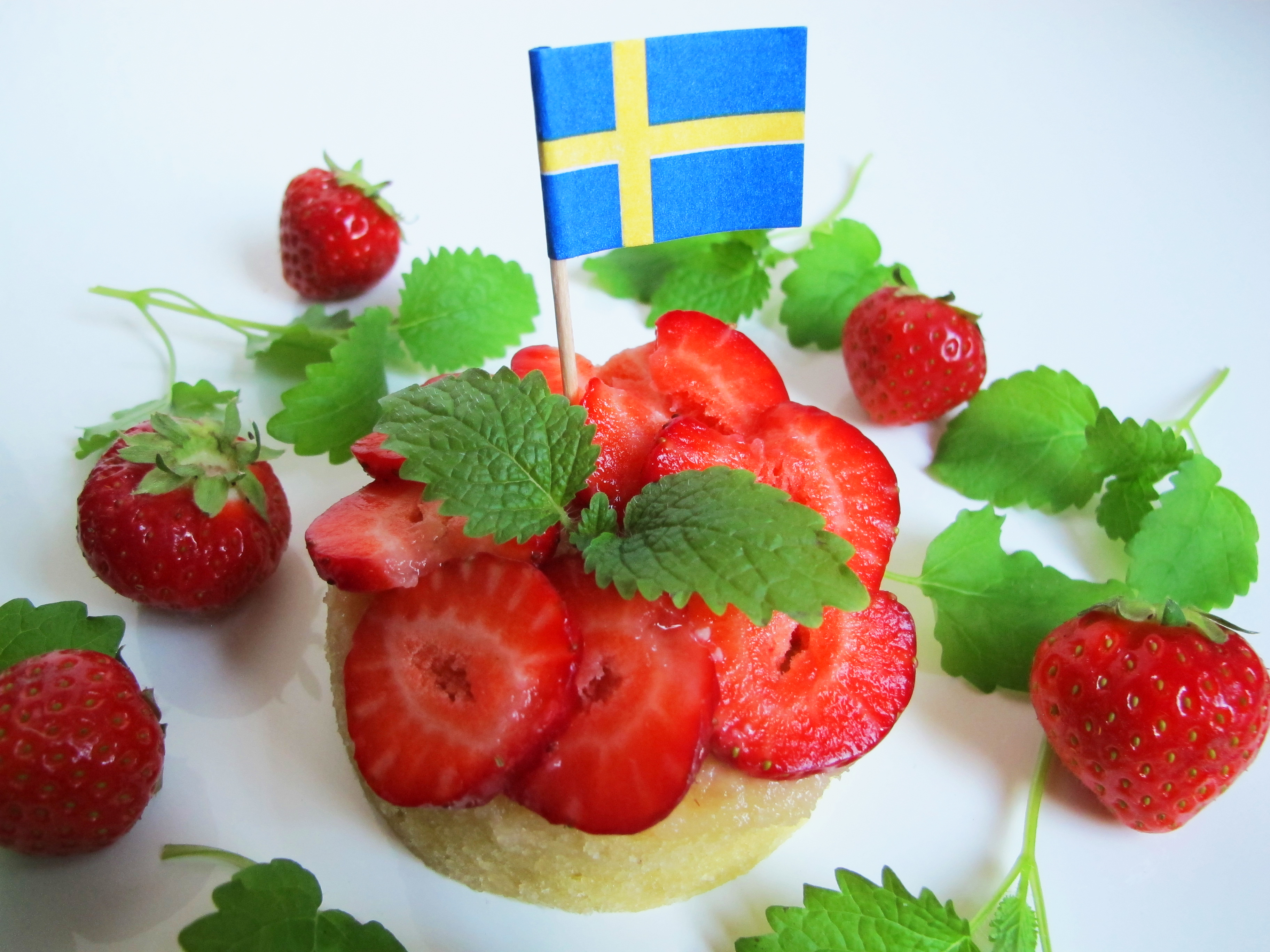 Aside from raising the flag, there aren’t strong traditions or food associations tied to nationaldagen so people seem to flounder a bit in terms of knowing how to mark the day. In efforts to remedy that, the Fruktrådet (fruit council) held a competition for a national pastry in 1994 and the winner was Helena Bergsmark of Café Gateau i Stockholm. Her simple creation incorporates well-loved Swedish ingredients including almond paste and Swedish strawberries. It’s easy to make and very portable for summer outings and celebrations. It’s also gluten-free which is highly appropriate since gluten intolerance and Celiac Disease are rather common in Sweden.