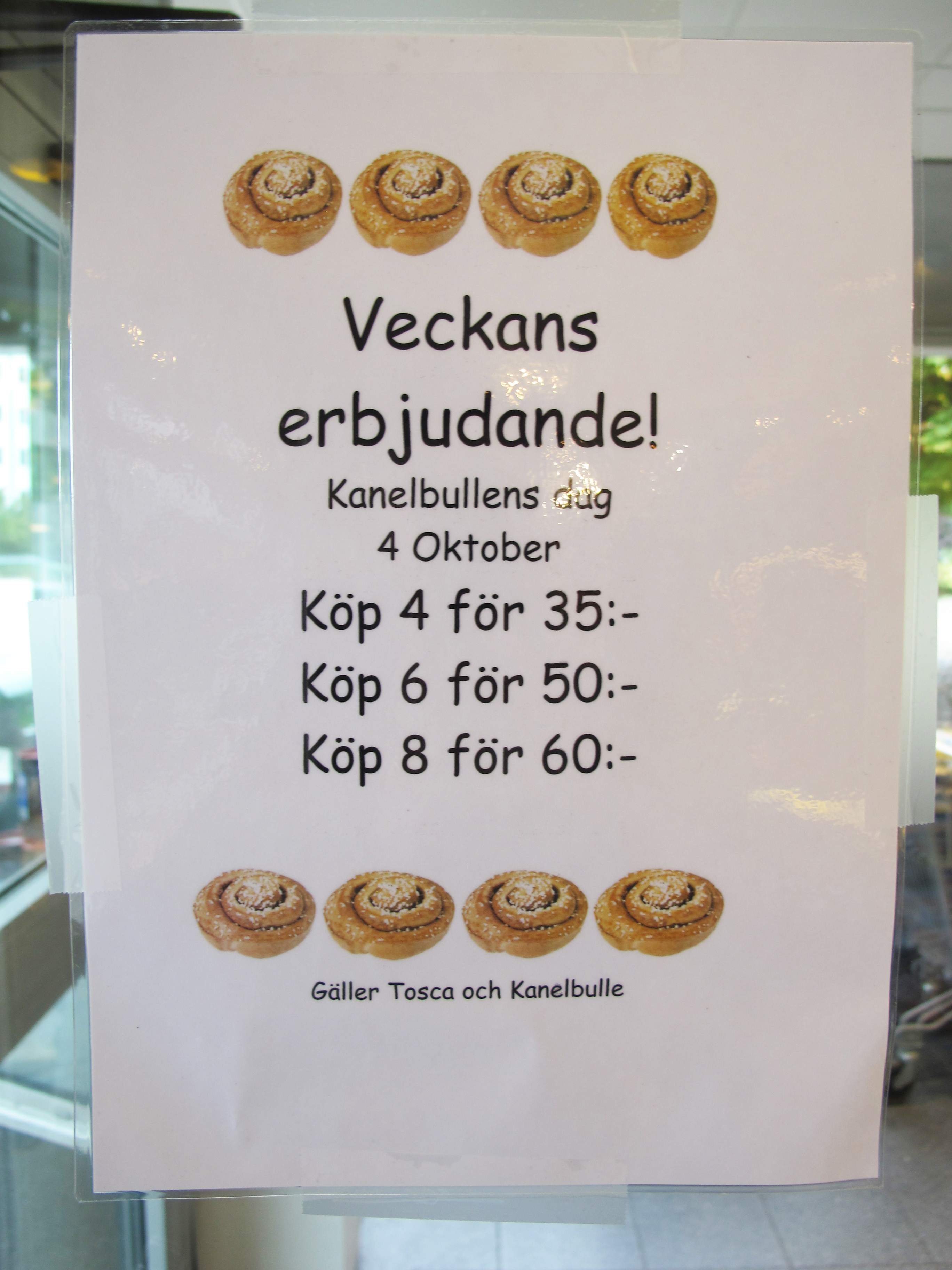 På torsdag kanelbullens dag!!   (On Thursday, cinnamon bun day!!)