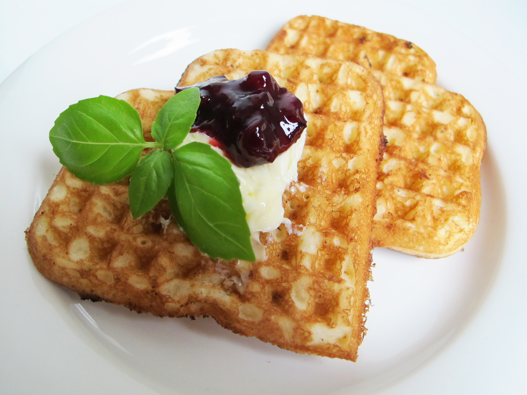 2. Heat the waffle iron and brush it with melted butter. Ladle 1/3-1/2 cup of batter into the iron and cook until golden brown. Serve warm, room temperature, or cold with butter or whipped cream and jam. Leftover waffles can easily be frozen.
